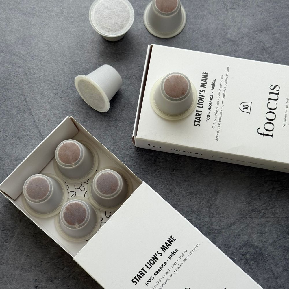 Réveillez votre esprit avec un espresso intense aux champignons Lion's Mane. Boostez votre concentration et votre créativité.